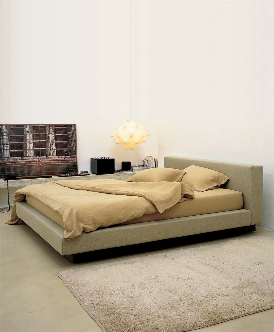 Double bed Japo from the Italian manufacturer features tisettanta furnishings. Made of solid wood. Upholstery is presented in a textile form. Colours in stock.