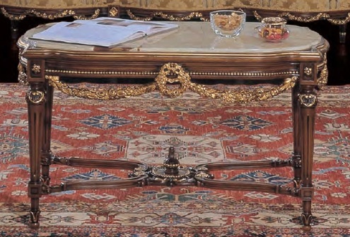 | Description: | Coffee table from the Italian manufacturer Fratelli Radice. The frame is made of solid wood, polished walnut. Carved handmade elements in gilt. Marble Pakistan. Finish as in the photo. |