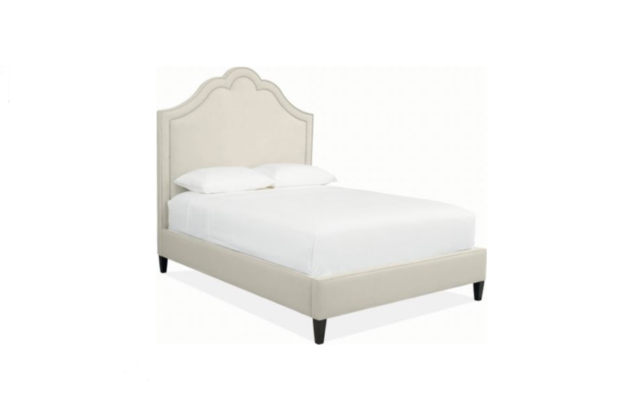 Bed Azzuro collection Bedscapes from the American manufacturer Tomasville. Elegant double bed classic silhouette with padded high headboard will become the focal point of any bedroom. Made of wood, black legs, shaped headboard upholstered with textile and embellished by a contour under decorative nails rustic brass. Frame with metal block. The bed is available in five sizes - Queen, California king, full, twin and king. Headboard of any size can be purchased separately. The choice of upholstery and finishes in the catalog of the manufacturer.