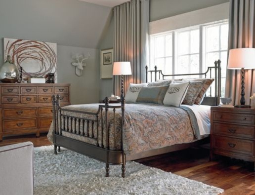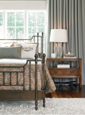 Bed from the collection of the American Authem from the American manufacturer Tomasville. Metal double bed with high headboard is made in a colonial style, which is characteristic of wrought iron furniture. Attractive design beds and thoughtful details create the feeling of coziness of days gone by. Dual legs, rounded corners, hand finish make the bed stylish and comfortable. The set includes a mattress with a support system. The bed is only available in Queen size.