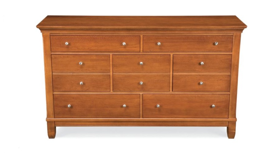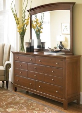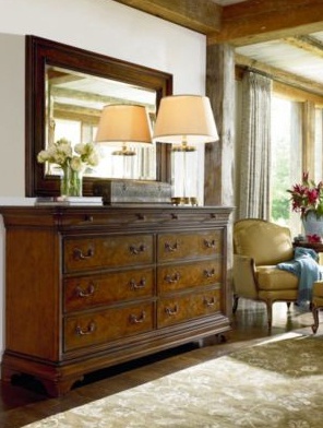 Chest from the collection Bridges 2.0 Thomasville American manufacturer. Universal model, made in classic style, suitable for a city apartment, a country cottage or an interior in loft style. Material - wood, finished in a light cherry warm colours, accessories - brushed Nickel. Seven drawers of various size for storing sweaters, lingerie and accessories. The model can be supplemented with wooden handles and a mirror with wooden frame, sold separately. The choice of finishes and accessories in stock.