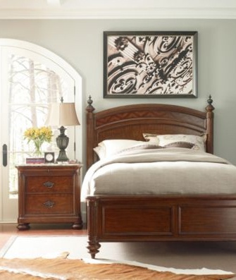 Bedside table from the collection of Ernest Hemingway from the American manufacturer Thomasville. Rectangular bedside table, executed in classical style, received its name in honor of the capital city of Kenya, which Hemingway called "the world capital of Safari". Made of wood in a Golden brown color, finish wood acacia. Legs and carved side posts, the top decorated with marquetry. Two large drawers under top one flat drawer for jewelry. Carved metal fittings. The choice of finishes and accessories in stock.