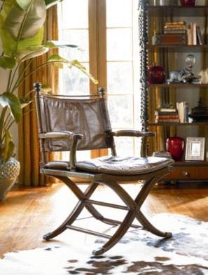 The chair of the working Safari from the collection of Ernest Hemingway from the American manufacturer Thomasville. The name of the chair is obliged to Ernest Hemingway, who popularized the word Safari in the novels and stories. Functional leather chair chaise made in the style of bungalows. The frame and legs made of wood, leather back, leather seat cushion. Folding legs X-shaped silhouette shod in clogs, armrests with soft leather linings. Options leather upholstery and trim, you can choose from the catalogue of the manufacturer.