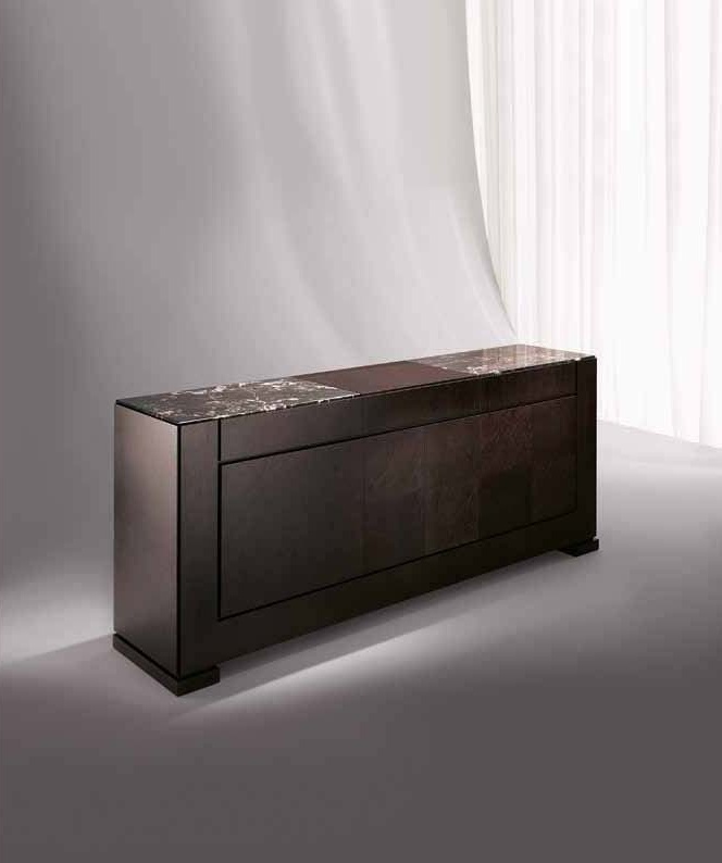 The PRISCA Cabinet 3 from the Italian manufacturer Smania. The model is made in modern style. The frame is made of wood, finished veneer, marble table top. Sideboard with four hinged doors and two drawers. The Central part of the top opening.