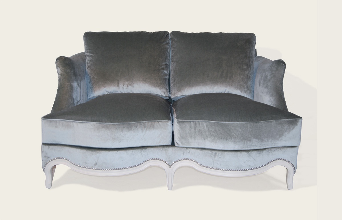 Sofa high arms Touch from the French manufacturer Pierre Collection. Double model with high armrests. The frame is made of wood. Upholstery of textile fabric nailed to the frame with decorative nails. The seat cushion and backrest - removable. Legs beautiful curved shape.