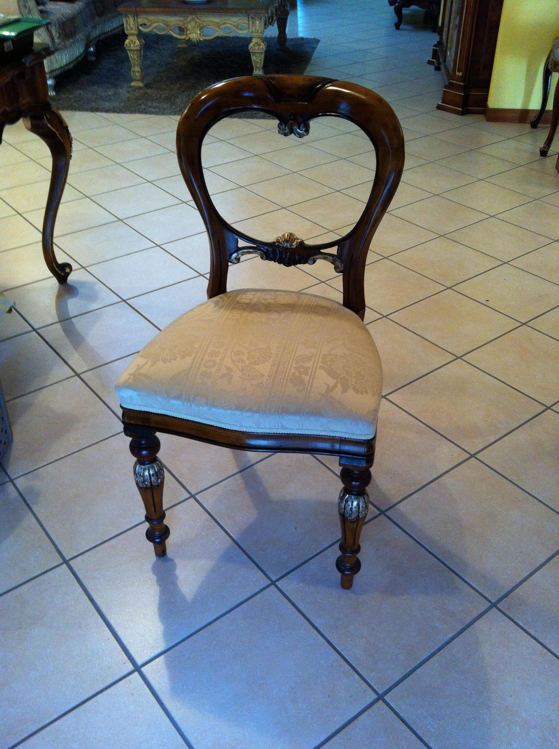 | Description: | The dining chair from the Italian manufacturer Palmobili. Chair with upholstered seat designed in a classic style, perfect for traditional interior dining room or living room. Material - wood in dark brown color, dark varnish finish. Carved legs with metal plates, through the back is decorated with carving and gilding. Seat with soft fabric upholstery is creamy white tones with floral pattern. Colors and detail in photo 2. |