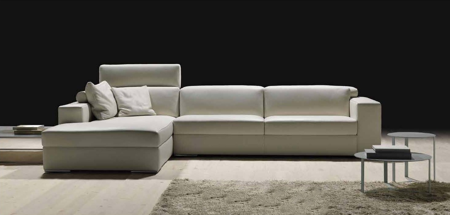 The Richmond modular corner sofa from Italian manufacturer Giulio Marelli. The sofa consists of three sections and has an adjustable headrest. For production the frame is made from solid wood and multilayer plywood. Upholstery leather or textile to choose from. Colors in the catalog. The sofa is complemented by two leather cushions.
