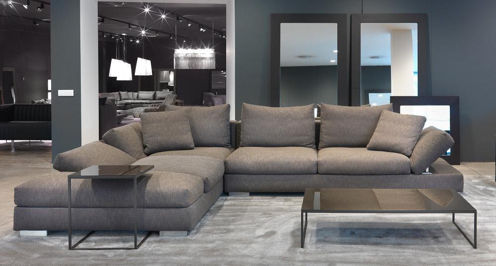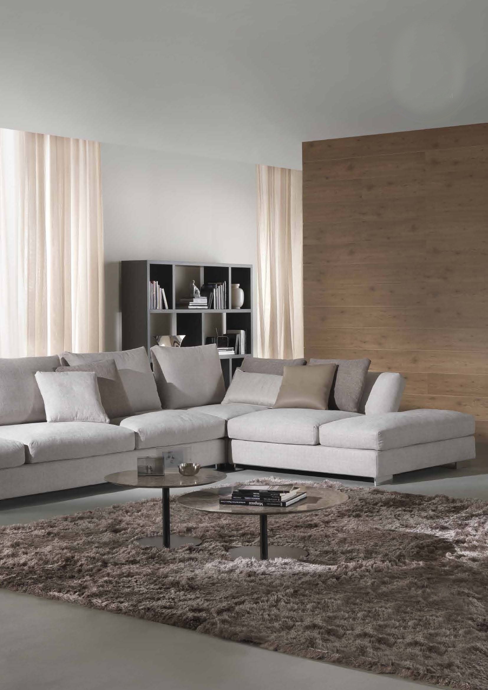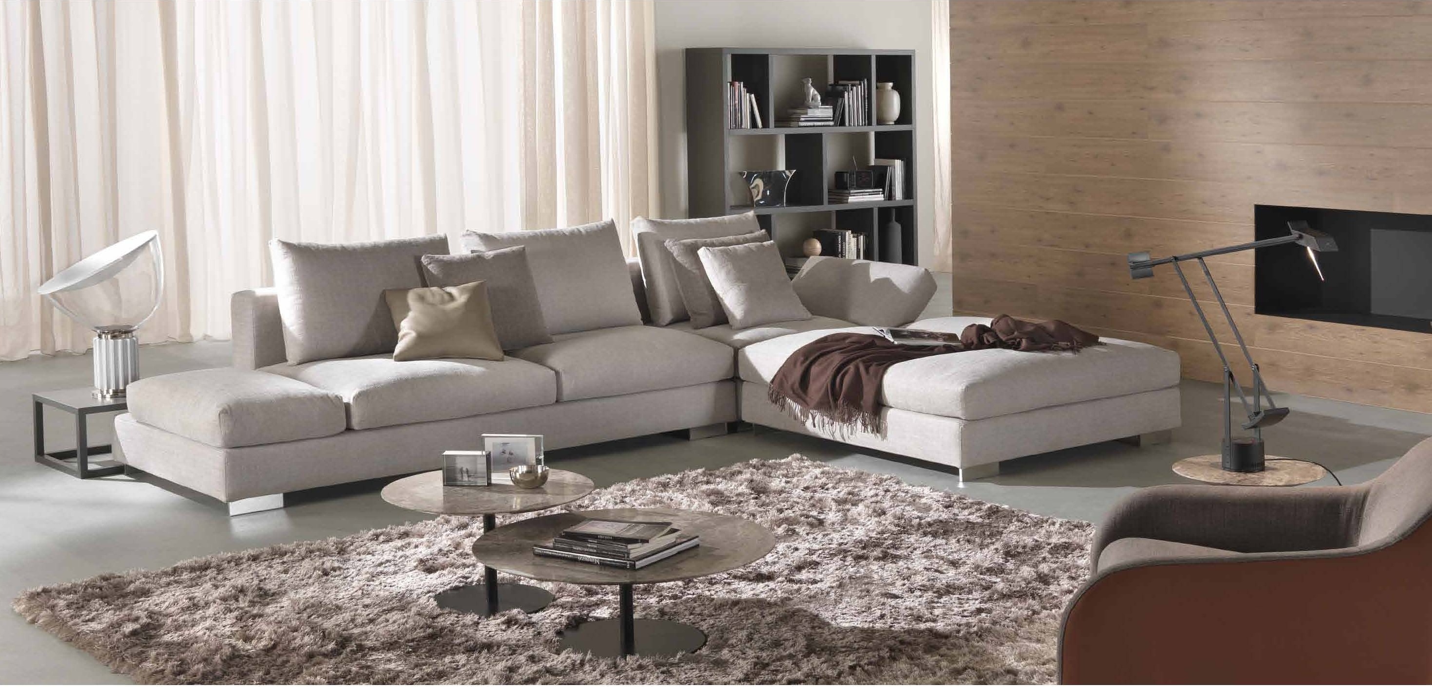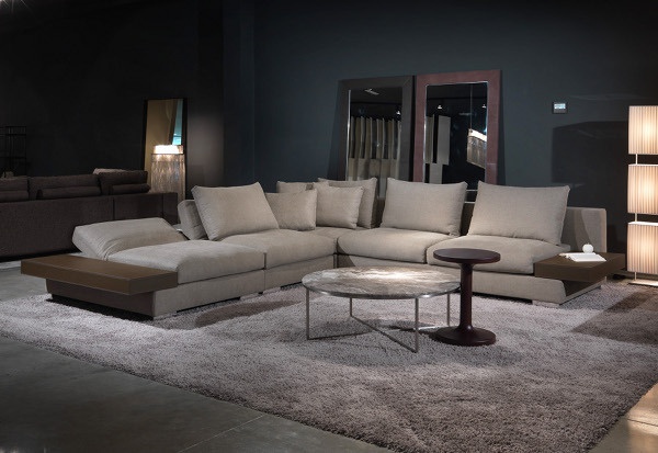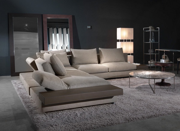 Sofa corner modular Mood by Italian manufacturer Giulio Marelli. The sofa can be composed of two, three and four sections. For production the frame is made from solid wood and multilayer plywood. Upholstery textile or leather. Filler foam. A distinctive feature of the model is the presence of Mood lifting mechanism in the backrest and the armrests, which provides for these items 5 various provisions. Complement the sofa cushions.