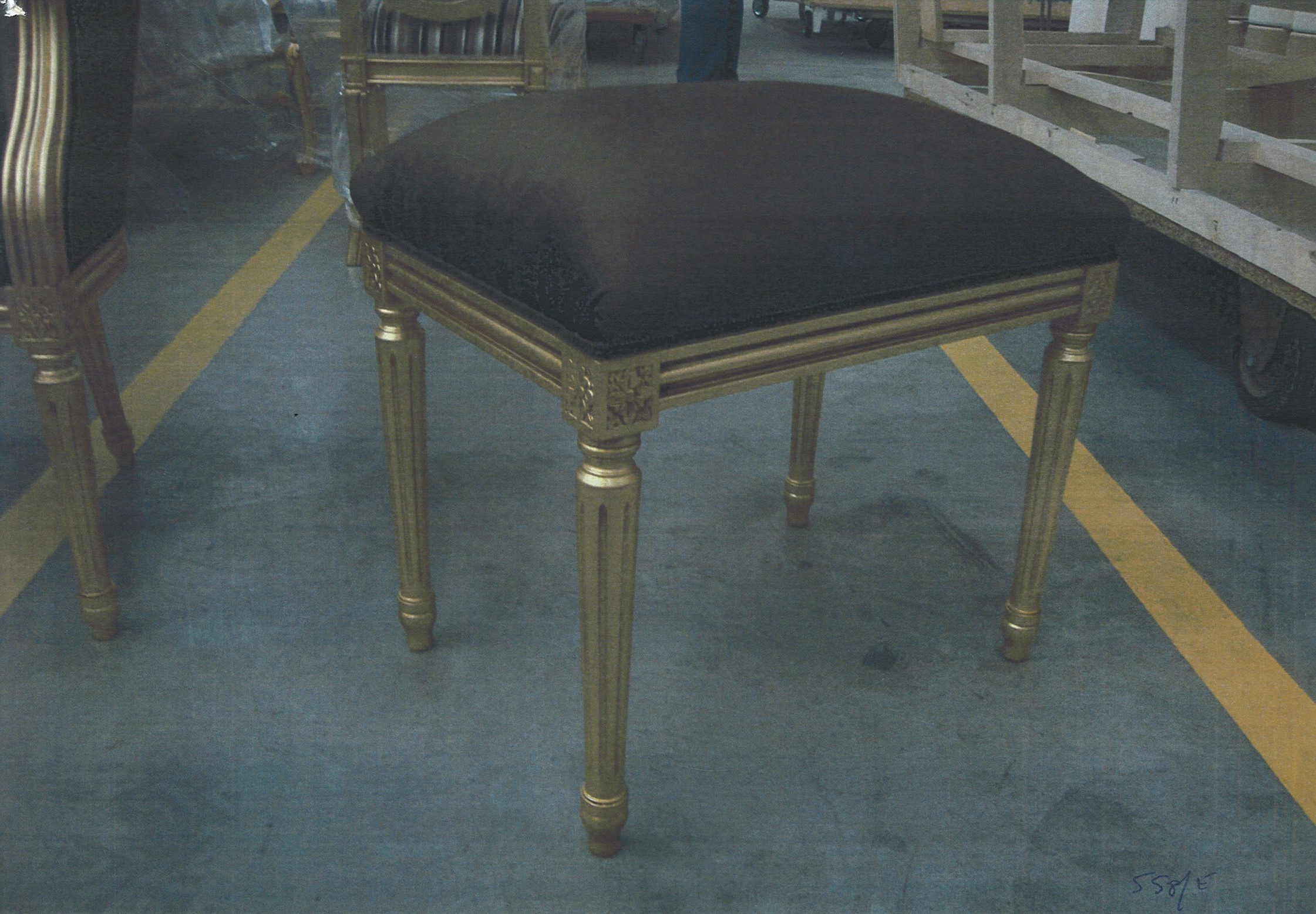 | Description: | The stool soft. The frame is made from solid, carved, handmade, gold foil code 10. Upholstery textile 558/E |