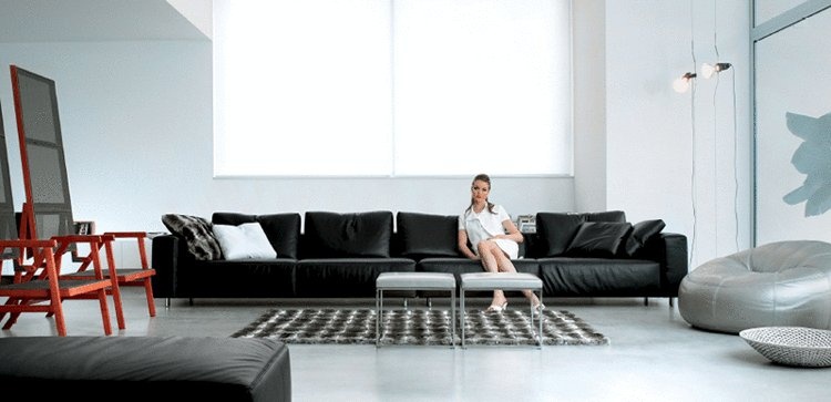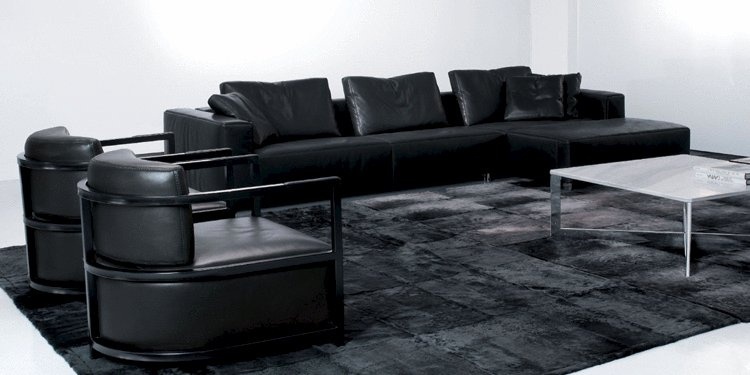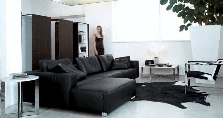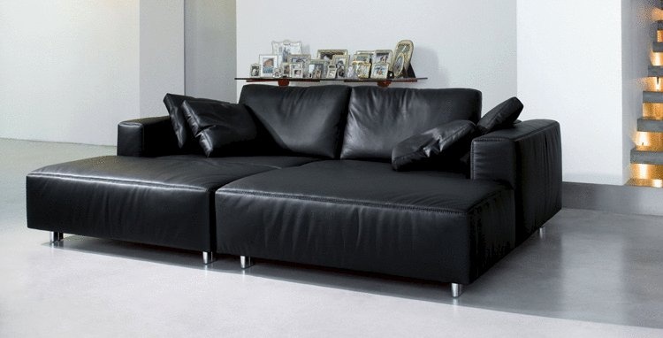 Modular sofa with leather upholstery, Time - Rivolta. Comfortable sectional sofa with a frame made of beech wood and steel legs. Upholstery - leather. The model of the modern style are ideal for relaxing at home.