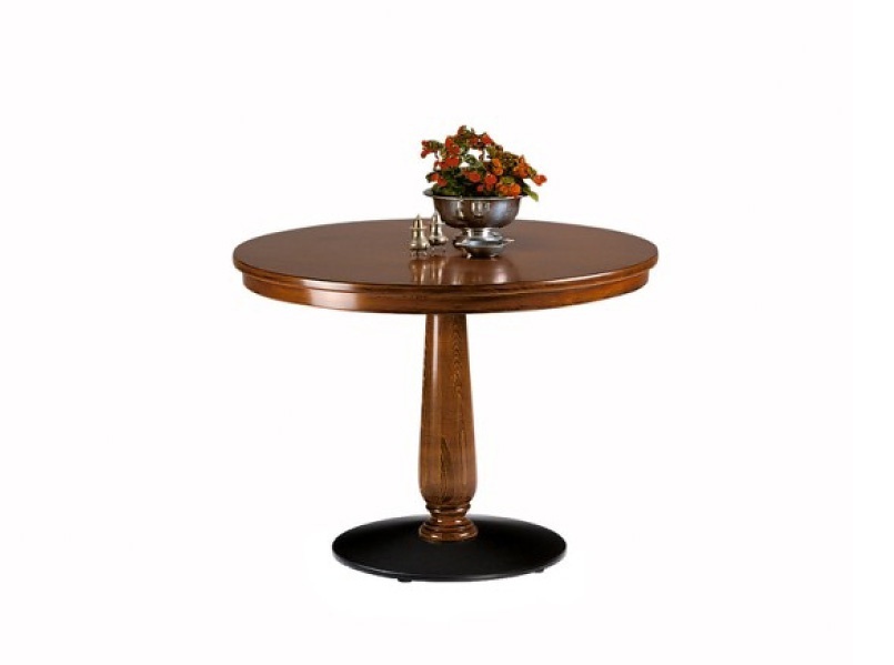 Round dining table on one leg from the Italian manufacturer Selva. Frame and legs made of solid wood, covered spanam cherry. Model in the classic style.