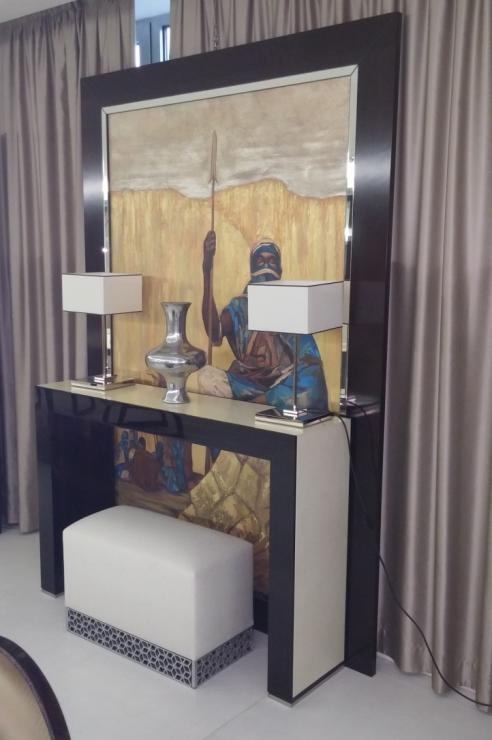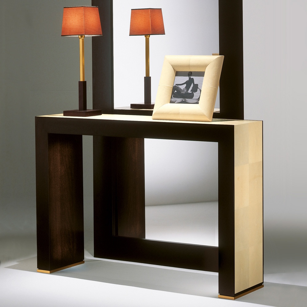 | Description: | The console from the Italian manufacturer Tura. Frame - wood. Cover the parchment in a frame of ebony (parchment natural Matt + gloss ebony). The stainless steel parts. |