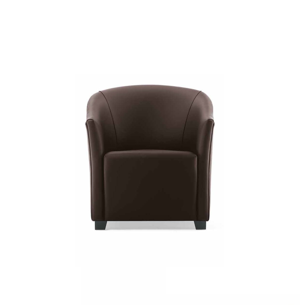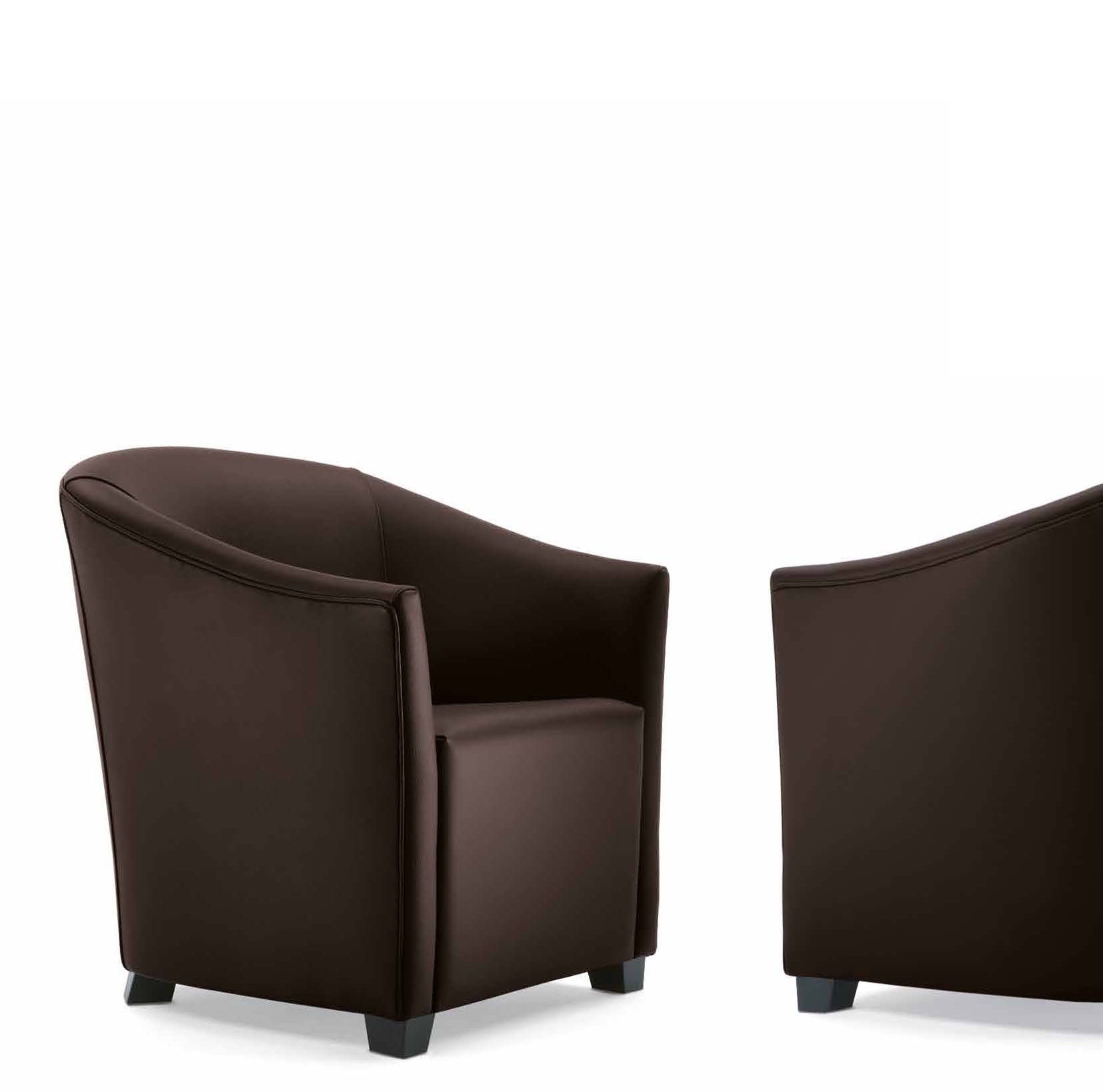 Leather chair semicircular Alice from the Italian manufacturer Giulio Marelli. Load bearing structure: solid wood and multilayer panels coated with polyurethane foam and Dacron. Springback seats: braided elastic belts. Filling of PUR-foam. The upholstery is leather. Colours in stock. The Alice armchair is perfect for living room or office.