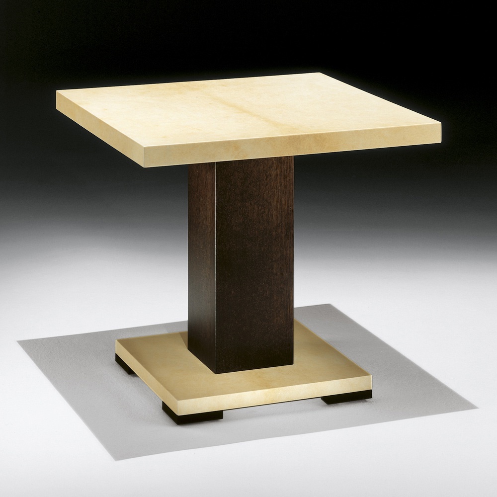 Coffee table from the Italian manufacturer Tura. Worktop - wood. The finish is a high - tech parchment (thin leather of a special tannage). The model is made in art Deco style. Colours in stock. The pieces of furniture produced at the factory in Italy TURA, produced in limited quantities.