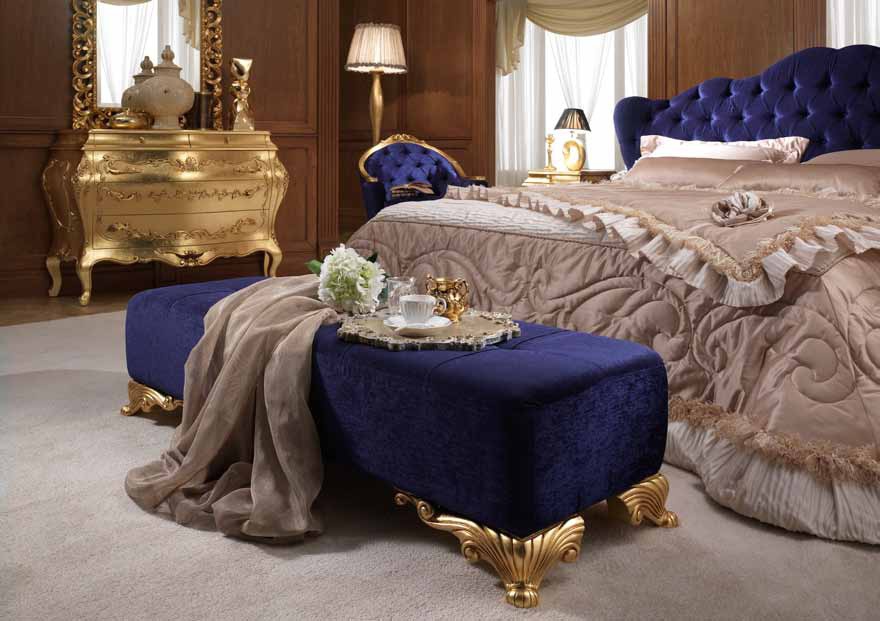 Set for bedroom Airone from the Italian manufacturer Piermaria. The frame is made of wood. Upholstery - textiles. Finish:CAT.D.684, FOGLIA ORO, CAT.D.684.