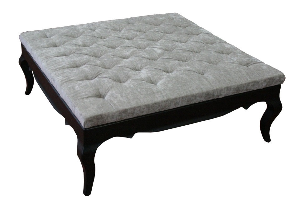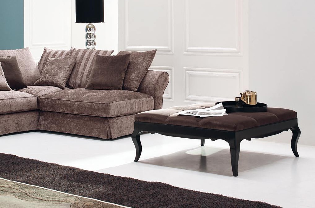 Poof Elisabeth from the Italian manufacturer Valmori. Model on curved legs. The frame is made of wood. Upholstery textile is proposed. Colors and finishes in stock.