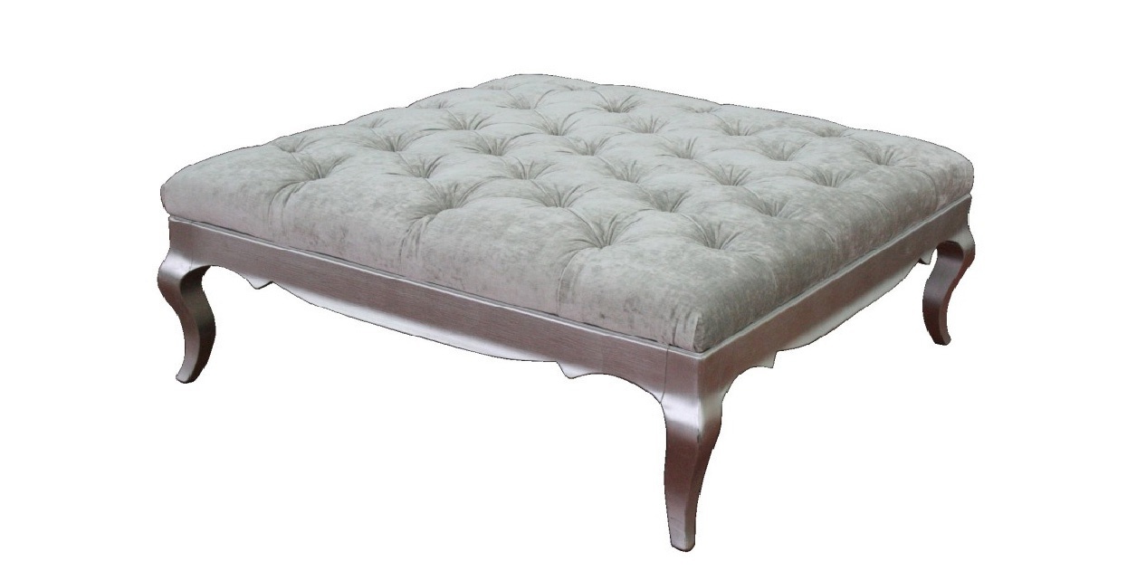 | Description: | Poof Elisabeth from the Italian manufacturer Valmori. The frame is made of beech wood. Finish silver - foglia argento. The upholstery is available textile - Art. VEGAS col 1403.06. |