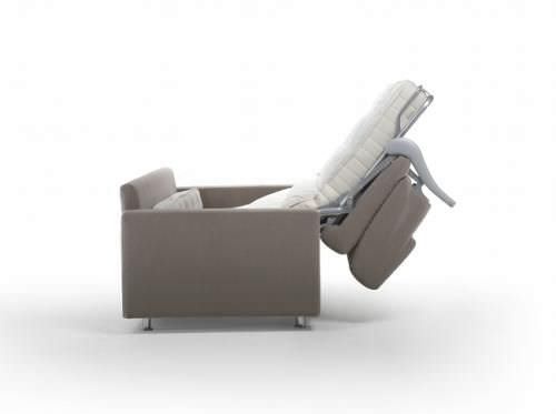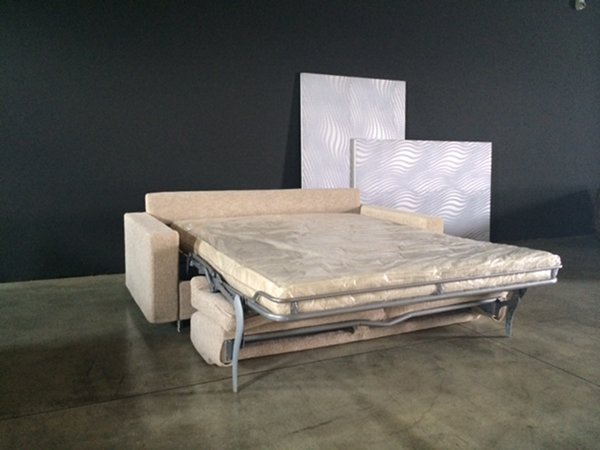Sofa bed double Daisy from the Italian manufacturer Giulio Marelli. The model has a frame made of solid wood. Upholstery textile. Filler foam. The peculiarity of this model is a mechanism which allows opening and closing of the sofa with only one movement without removing the seat cushion and backrest.