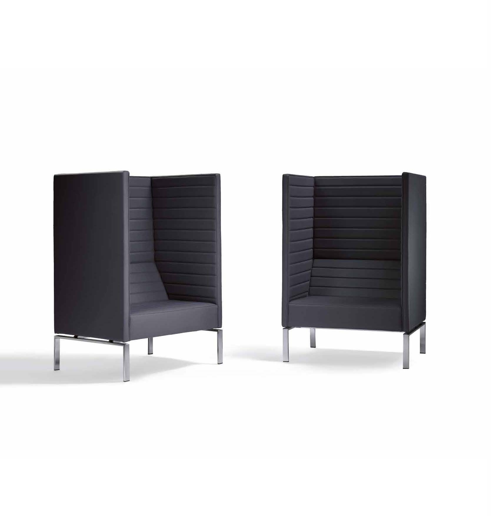 The high-backed chair Stripes from the Italian manufacturer Giulio Marelli. Load bearing structure: solid wood and multilayer panels coated with polyurethane foam and Dacron. Springback seats: braided elastic belts. The upholstery is leather. Original design armchair Stripes will give Your interior a twist.