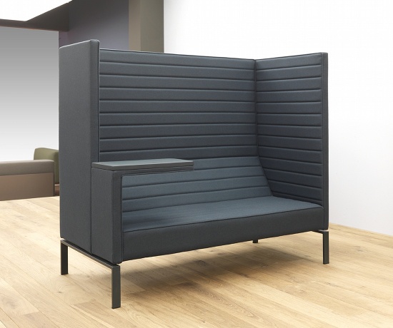 Stripes sofa from Italian manufacturer Giulio Marelli. Load bearing structure: solid wood and multilayer panels coated with polyurethane foam and Dacron. Upholstery textile. The sofa has a built-in writing table. The sofa is perfect for public spaces.