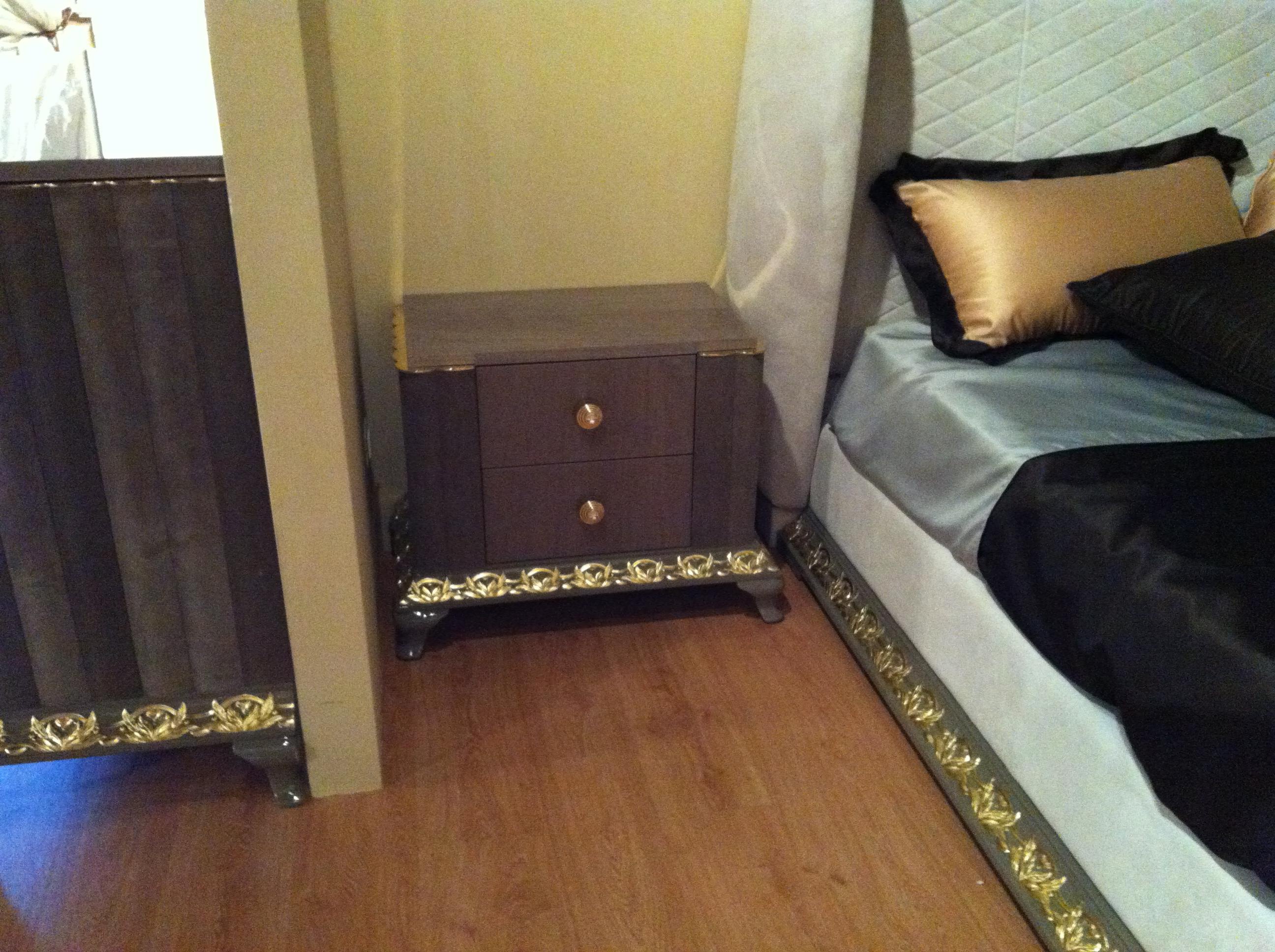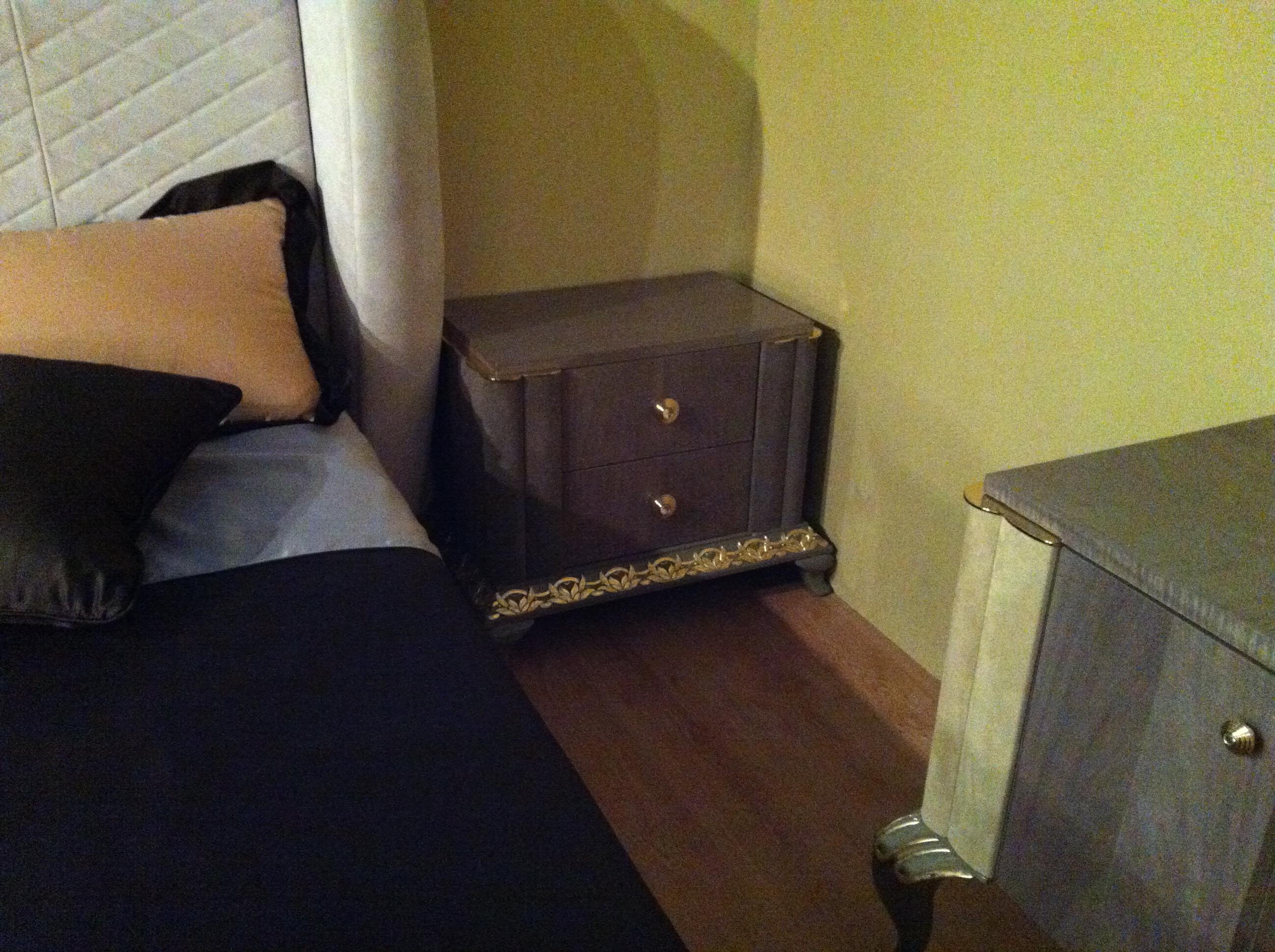 | Description: | Nightstands bedside of Hollywood collection from the Italian manufacturer Palmobili. Luxury Deluxe nightstand with two drawers is made of polyester in the style of art Deco. Lacquered carved legs, a wavy surface, finished with suede and brass ingots, frieze made in Tanganyika. Colors - bluish-gray tones. The nightstand is decorated with carving and gilding and brass handles decorated with stones from Swarovski. Details, and shades on photo 4,5. |