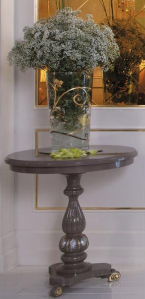 | Description: | Table from the collection of Hollywood from the Italian manufacturer Palmobili. Round coffee table made in the art Deco style, decorate living room, bedroom or boudoir. Finishing - varnish; carved stem and base made of polyester decorated with silver details. Colours - light shades of gray. Shades and finishings in photo 1. |