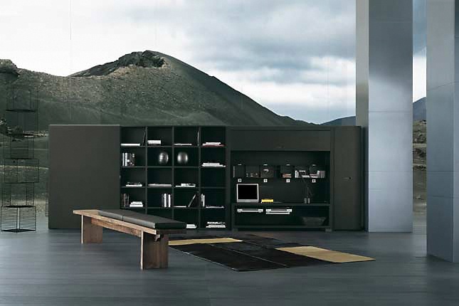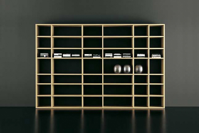 Modular storage system Metropolis from the Italian manufacturer features tisettanta furnishings. The frame system is made of oak. The color of this model system can be selected in the catalog of the manufacturer.