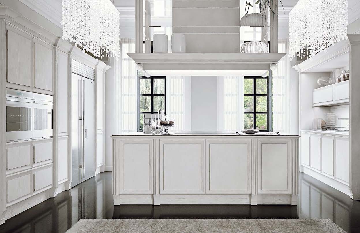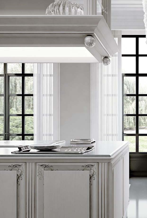 | Description: | Kitchen Nuvola from Italian manufacturer Busatto. Set is made of wood, stone countertop. 8N finish Laccato Bianco Sabbiato Non Anticato. Decor - Foglia Argento. |