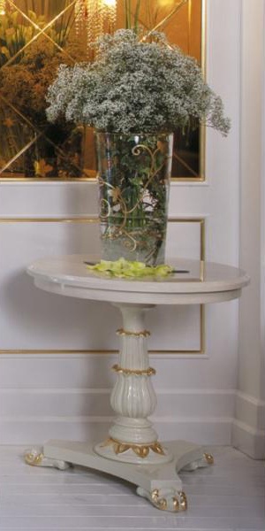 | Description: | Table from the collection of Hollywood from the Italian manufacturer Palmobili. Round coffee table made in the art Deco style. He will beautify living room, bedroom or boudoir, but also can serve as a stand for the phone. Finish - white lacquer; carved stem and base made of polyester decorated with gilt details. The colors and detail in photo 1. |