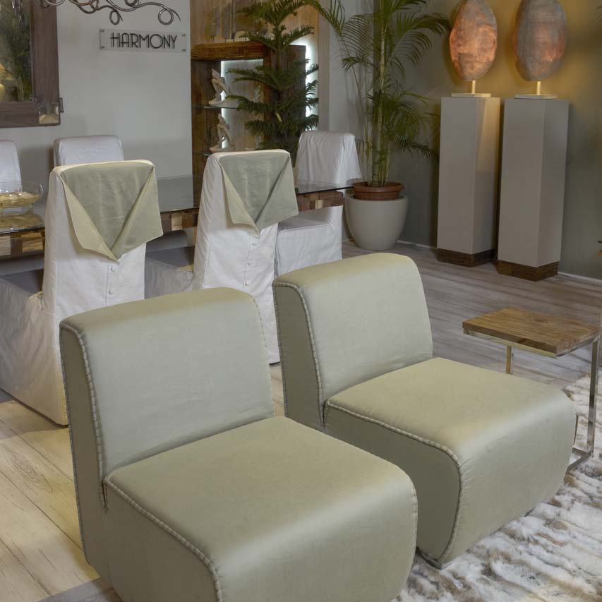 The side chair in linen upholstery Harmony, Contradictions