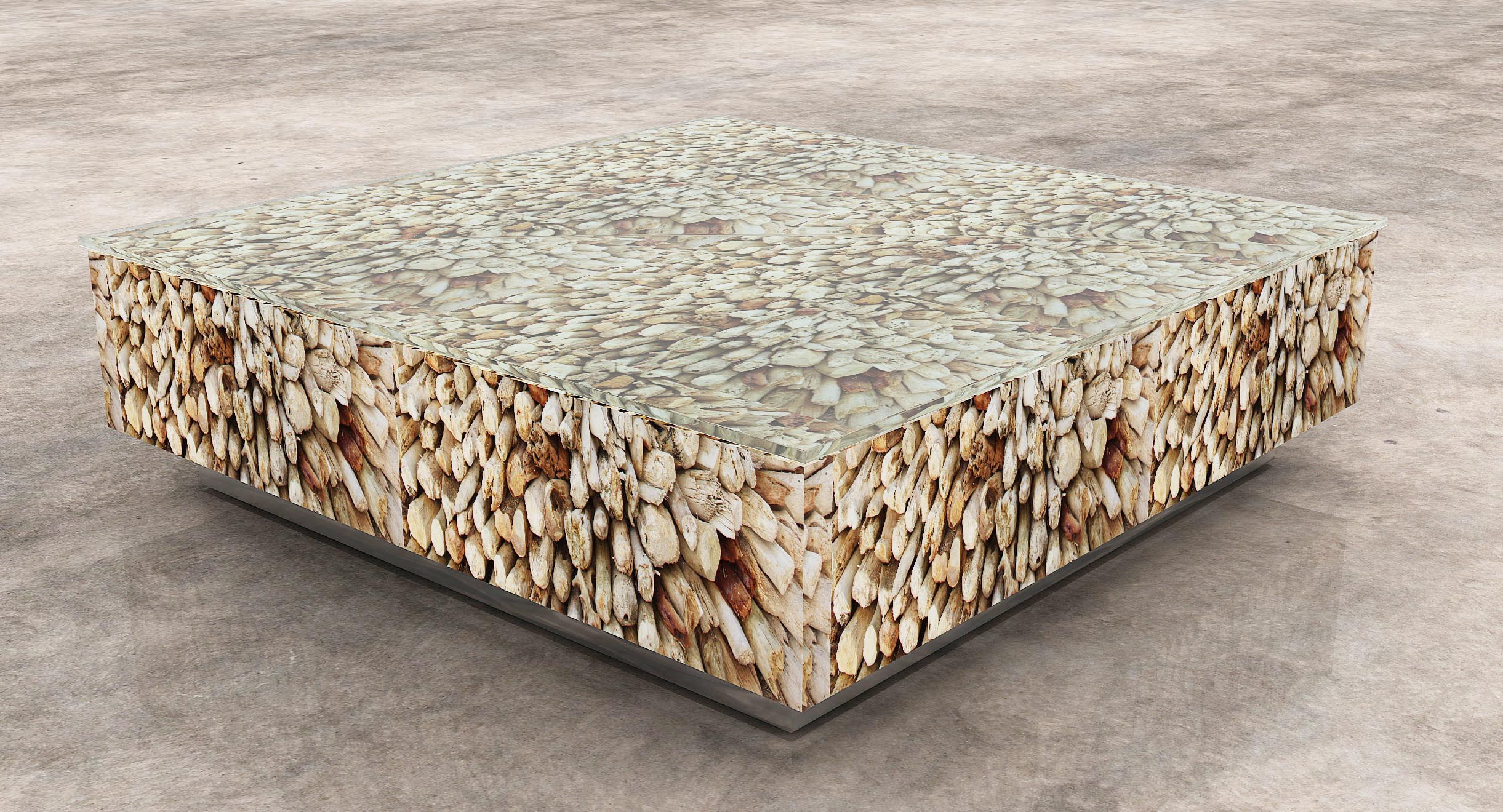 Coffee table made of wood, steel and glass Avant Garde, Contradictions