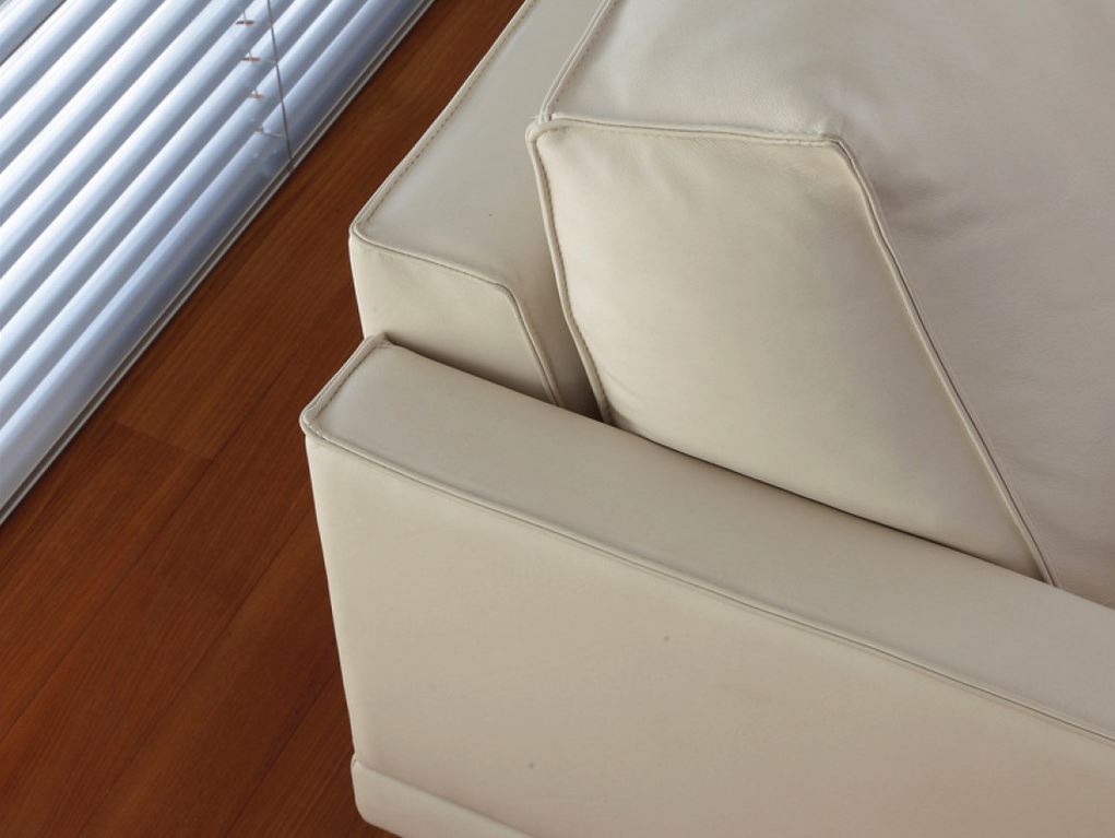 Sofa double E time from the Italian manufacturer Bodema. Frame made of beech covered with stable foam and rubberized backing. The spring on the elastic mesh of the interwoven straps. The seat, backrest and cushions in the form of a "sandwich" made of goose down with inserts in polyurethane foam. Upholstery - eco-leather in stock. Modern sleek design fits perfectly in stylish living room.