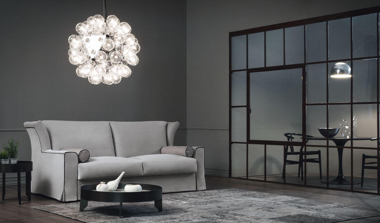 Sofa bed double Albertone from the Italian manufacturer Bodema. The case is natural wood. Filler - foam, goose down. The frame is covered with shape retaining polyurethane foam and rubberized backing. The spring on the elastic mesh of the interwoven straps. The seat, backrest and cushion, in the form of a "sandwich" made of goose down with inserts in polyurethane foam. Upholstery - textiles from the company portfolio. The product is designed in modern style, perfect choice for a stylish interior.
