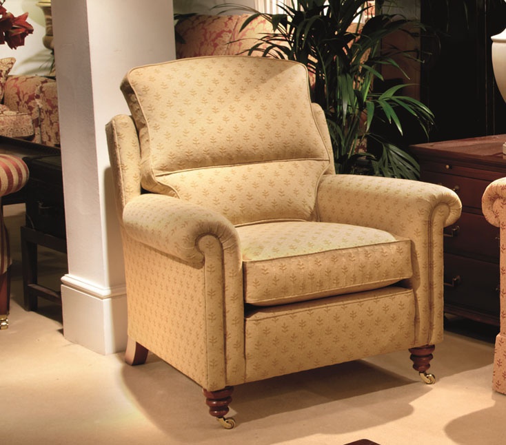 | Description: | Chair with semicircular arms Southsea Minor from the British manufacturer Duresta. The model is made in classic style. The frame is wooden. Upholstery textile Summer Street Russet Gold. Filler - duck feather and hollofayber. |