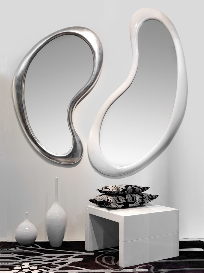 | Description: | Figured wall mirror from the Italian manufacturer Spini. The mirror is made in the form of a curved oval frame in white lacquered. The frame is made manually. Finish from the manufacturer - lacca bianco. Trim the photo. |