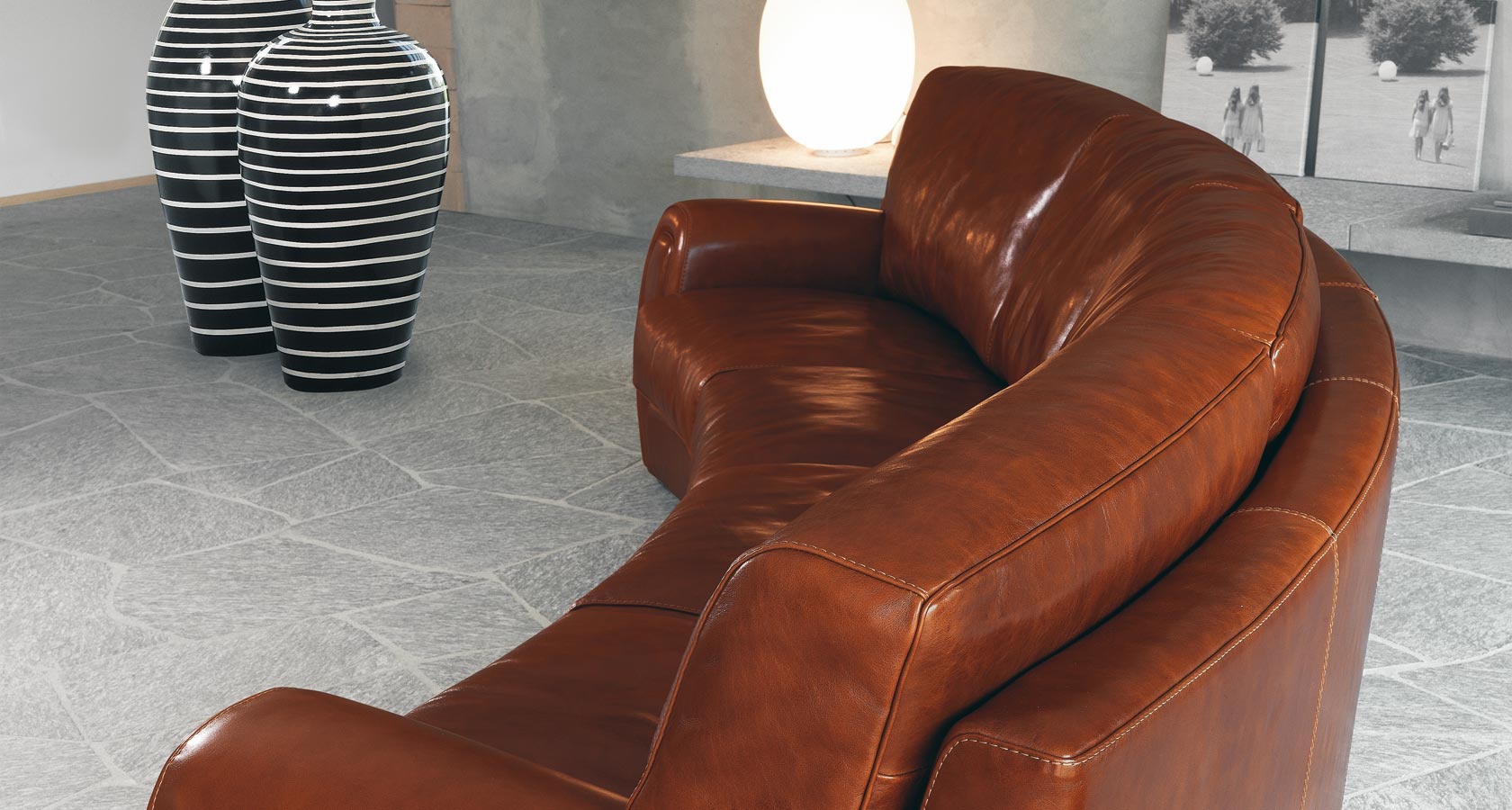 The triple Calliope leather sofa from Italian manufacturer Tierre Salotti. The frame is made of wood. Filling of PUR-foam. Upholstery - leather. Semi-circular leather sofa will look great in any living room.