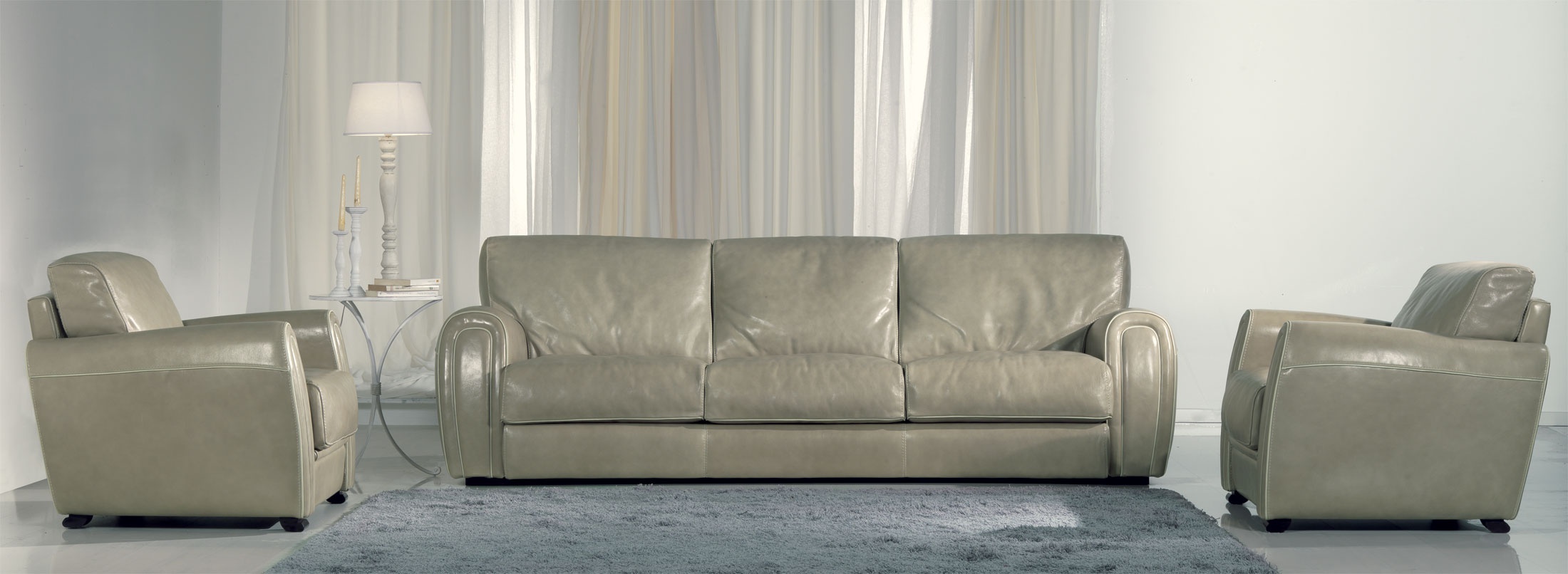 | Description: | Living room (sofa set) Calliope from the Italian manufacturer Tierre Salotti. Set consists of sofa and two chairs. The frame is made of wood. Filling of PUR-foam. Upholstery - leather cuoio col. Ghiaccio. |