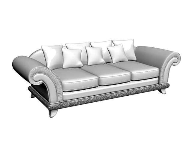 Three seater sofa Randa from the Spanish manufacturer Coleccion Alexandra. The housing and shaped legs made from wood. Finish the catalog of the company. Seat and back upholstered in fabric or leather from a range of companies to choose from. Complement the design of decorative pillows. Distinguished elegance and practicality.