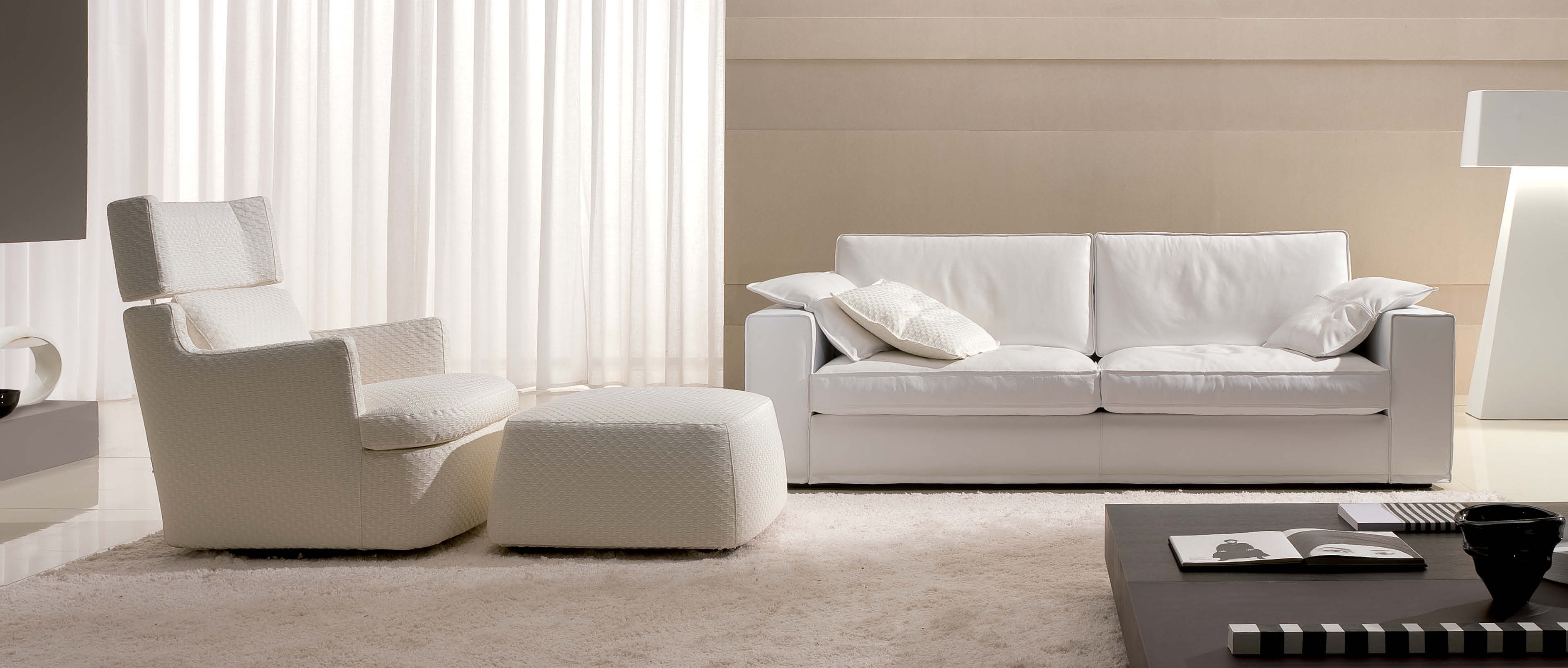 The Smart sofa from Italian manufacturer CTS Salotti. Big twin model modern style with a high degree of comfort. The frame is made of wood and metal. Upholstery - textile fabric from the range of the factory. Colours in stock. Smart is available in two versions: with pillows from goose down and with cushions made of polyurethane.