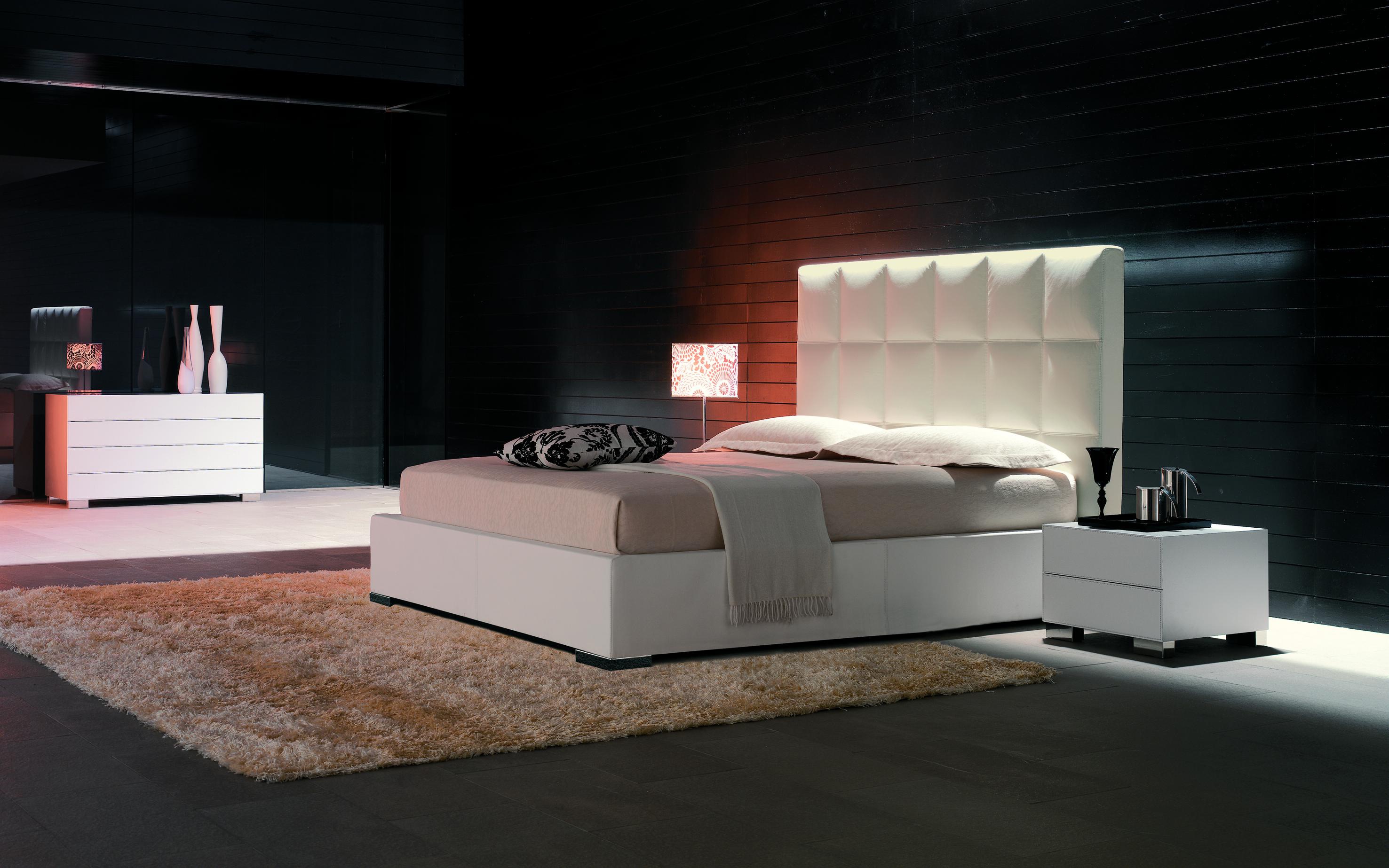 William bed from Italian manufacturer Cattelan Italia. Bed frame made of wood. The upholstery is made of genuine leather. The color of this model bed - white. The variant with a lifting mechanism, with a drawer for storage.