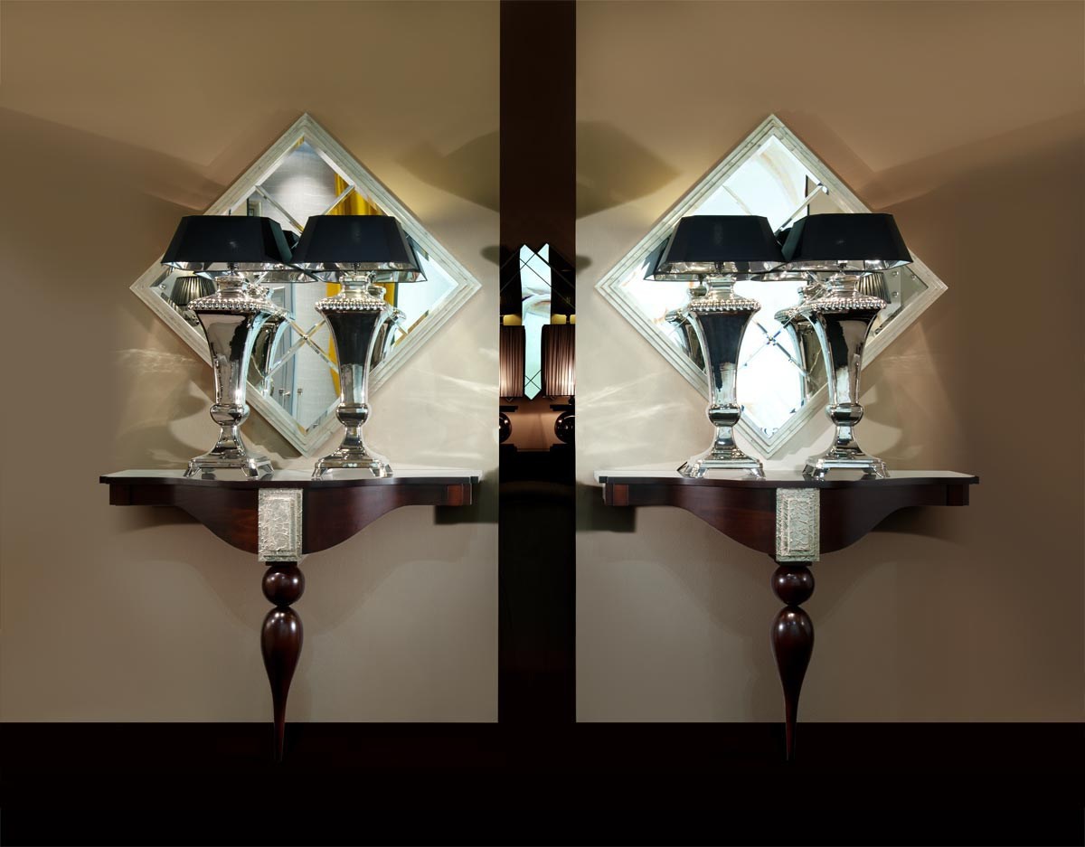 Console wall Ambiance from the Italian manufacturer Сasali. The frame is made of wood. Finishing - veneer, varnish. Acts figure decor prop, silver. Color brown, silver. The product in art Deco style, will give the room elegance and charm.