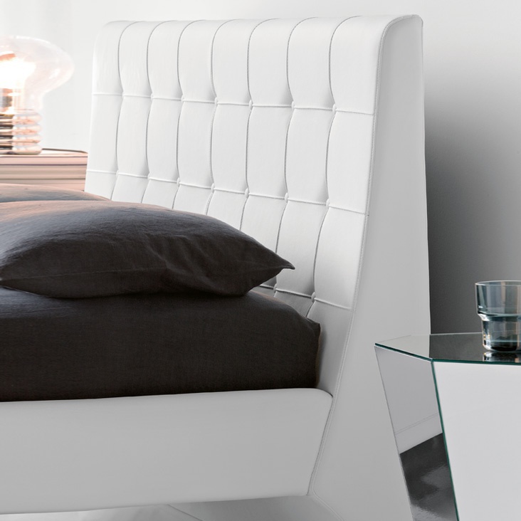 The Franklyn bed from Italian manufacturer Cattelan Italia. The frame is made of wood. The upholstery is made of leather, imitation leather or textile. Legs are made from chrome steel. The color of this model bed - white. Model bed in a modern style.