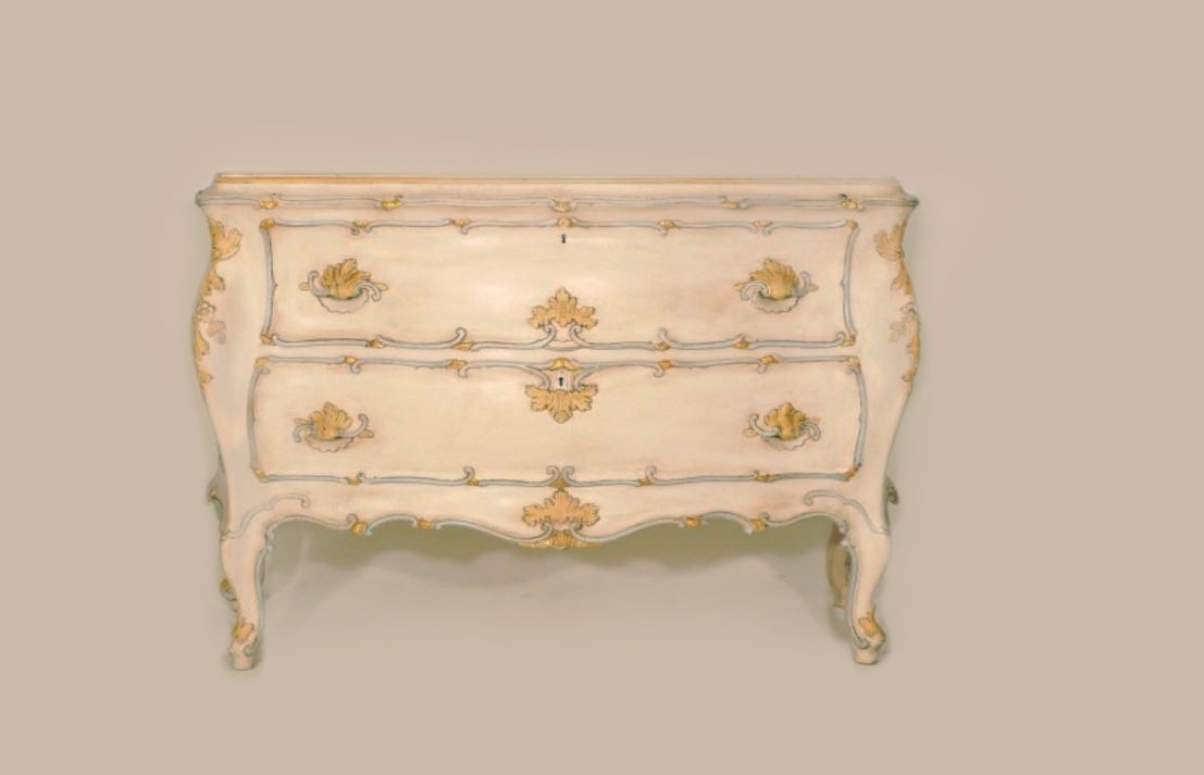 | Description: | A chest of drawers from Italian manufacturer Chelini. The frame is made from solid wood. Finish - Avorio lacquer in Policromia. The hand-carved gilded. |