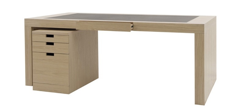 Desk Daisy from the Belgian manufacturer of Luz Interiors. The model of a rectangular shape equipped with a module with drawers. The furniture is made of wood, finished with oak veneer. Table top is covered with leather with decorative embroidery. Finish colors range from the factory.