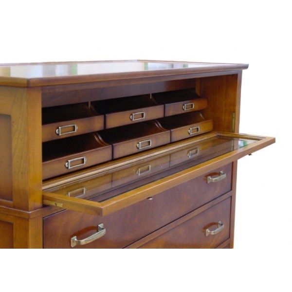 | Description: | Chest of drawers Italian manufacturer L'origine. Presents a model on four small feet, sliding drawers. Rectangular metal handles. The model is made on a frame of cherry tree. |