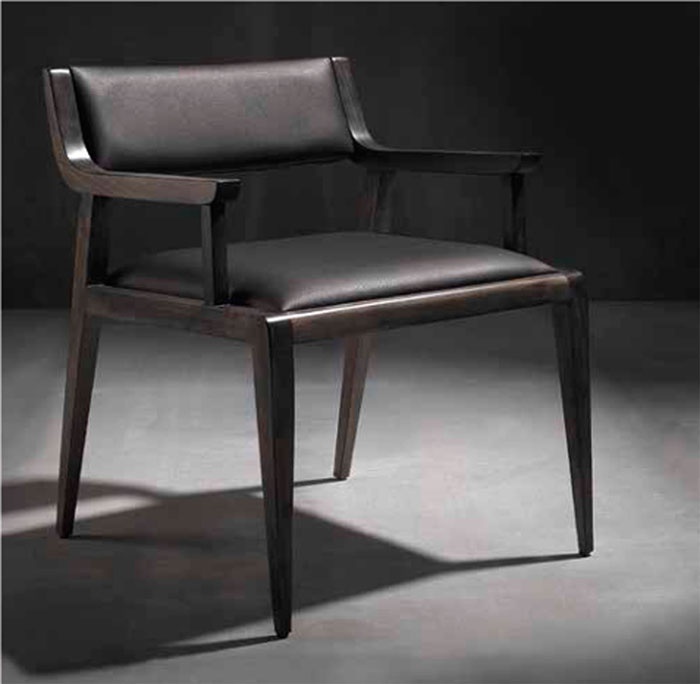 Chair with armrests Nadin from the Spanish manufacturer Coleccion Alexandra. The model is made in a modern style. The frame is wooden. The upholstery is leather. Color - black. The perfect solution for the modern dining room.