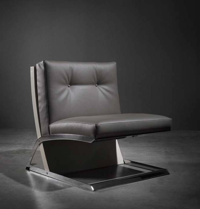 The Cult armchair by Spanish manufacturer Coleccion Alexandra. The body wood. Seat and back are covered with skin. Legs in chromed metal. Color option for company directory.