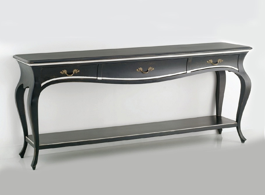 The console from the Italian manufacturer Chelini. The frame is made from solid wood. Model with drawers and built-in lower shelf. A great choice for the living room or bedroom in a classic style. Product color black.