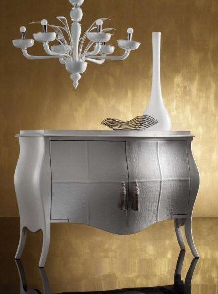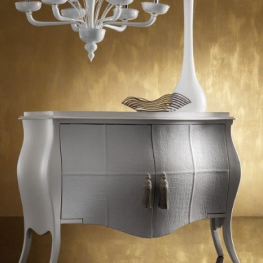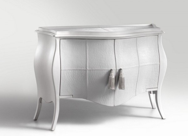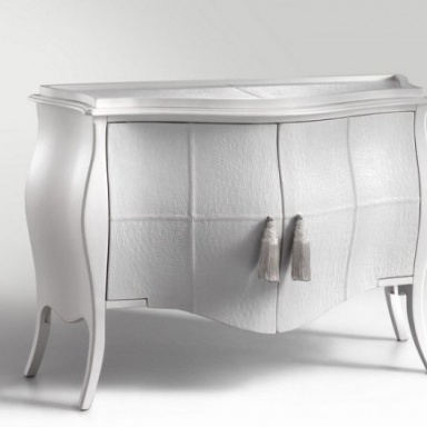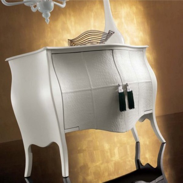 Sideboard with hinged doors Italian manufacturer L'origine. Presents a model of snack bar that is mounted on a wooden frame. Finish of lime, color in white. A modern solution for the interior of the dining room.
