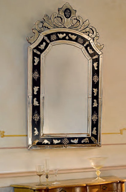 | Description: | The mirror from the Italian manufacturer Arte Veneziana. Figured wall mirror, executed in Venetian-style noble combines the luxury of antiquity and romantic modernity. Antique mirror glass is mounted on a wooden frame. The average face frame color black, frame is made of glass and decorated with small mirror tiles. Hand etched and cut. Colors and finishings in photo 1. |